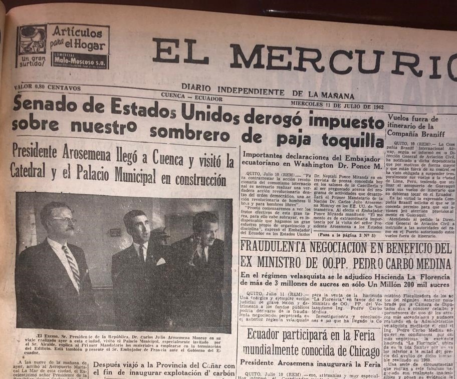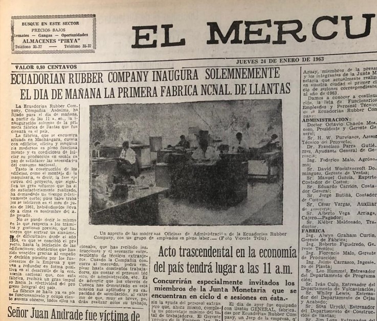 El Mercurio informaba sobre el establecimiento de la “Ecuadorian Rubber Company” (ERCO) en Cuenca.