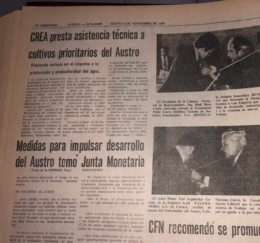 En este contexto surgió el Centro de Reconversión Económica de Azuay, Cañar y Morona Santiago (CREA). Se vivía una depresión económica y social. La II Guerra Mundial había afectado a América Latina y el Austro no era una excepción. El CREA actuó en la reconfiguración de la región.
