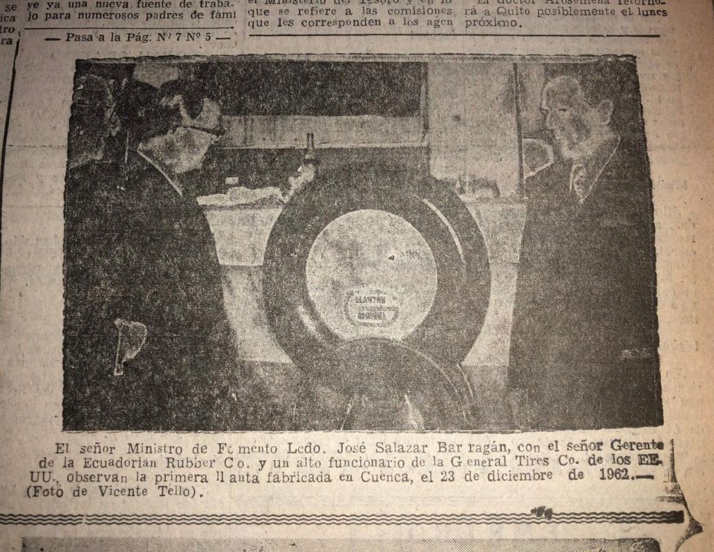 Entre 1954 y 1963, el desarrollo industrial de Cuenca vivió una aceleración. La Ley de Incentivos Tributarios a la Industrialización de Azuay y Cañar, promulgada en 1954, atrajo inversiones internacionales como la de la “Ecuadorian Rubber Company” (ERCO), que se fundó en 1955.
