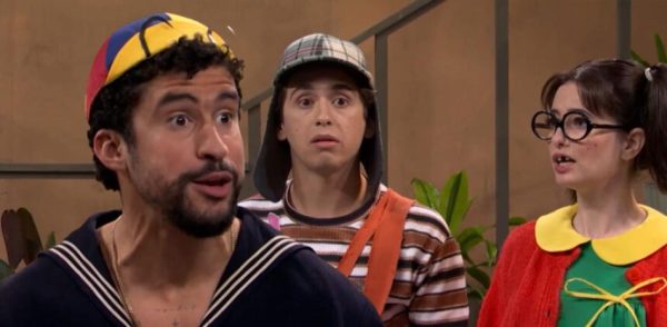 «SNL» recreó la dinámica original de la serie con su elenco, comenzando por «El Chavo», interpretado por el comediante Marcello Hernández, de origen cubano y dominicano. «Quico» fue interpretado por el anfitrión del episodio, el cantante Bad Bunny, quien replicó los característicos cachetes inflados y el tono de voz peculiar del personaje, originalmente encarnado por Carlos Villagrán.