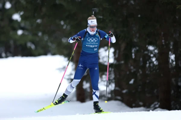 Es una competencia que mezcla esquí de fondo y tiro. Los atletas parten esquiando y deben dar una serie de vueltas, debiendo afrontar al final de cada una una prueba de tiro que puede ser de pie o acostado, intentando acertar a cinco blancos que tienen delante.