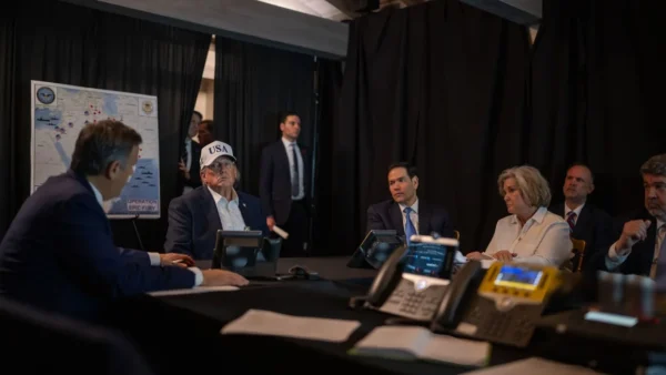 Para cuando el presidente Donald Trump aterrizó, el espacio funcionaba como una sala de crisis improvisada desde la que supervisaría el inicio de un ataque sostenido contra Irán.