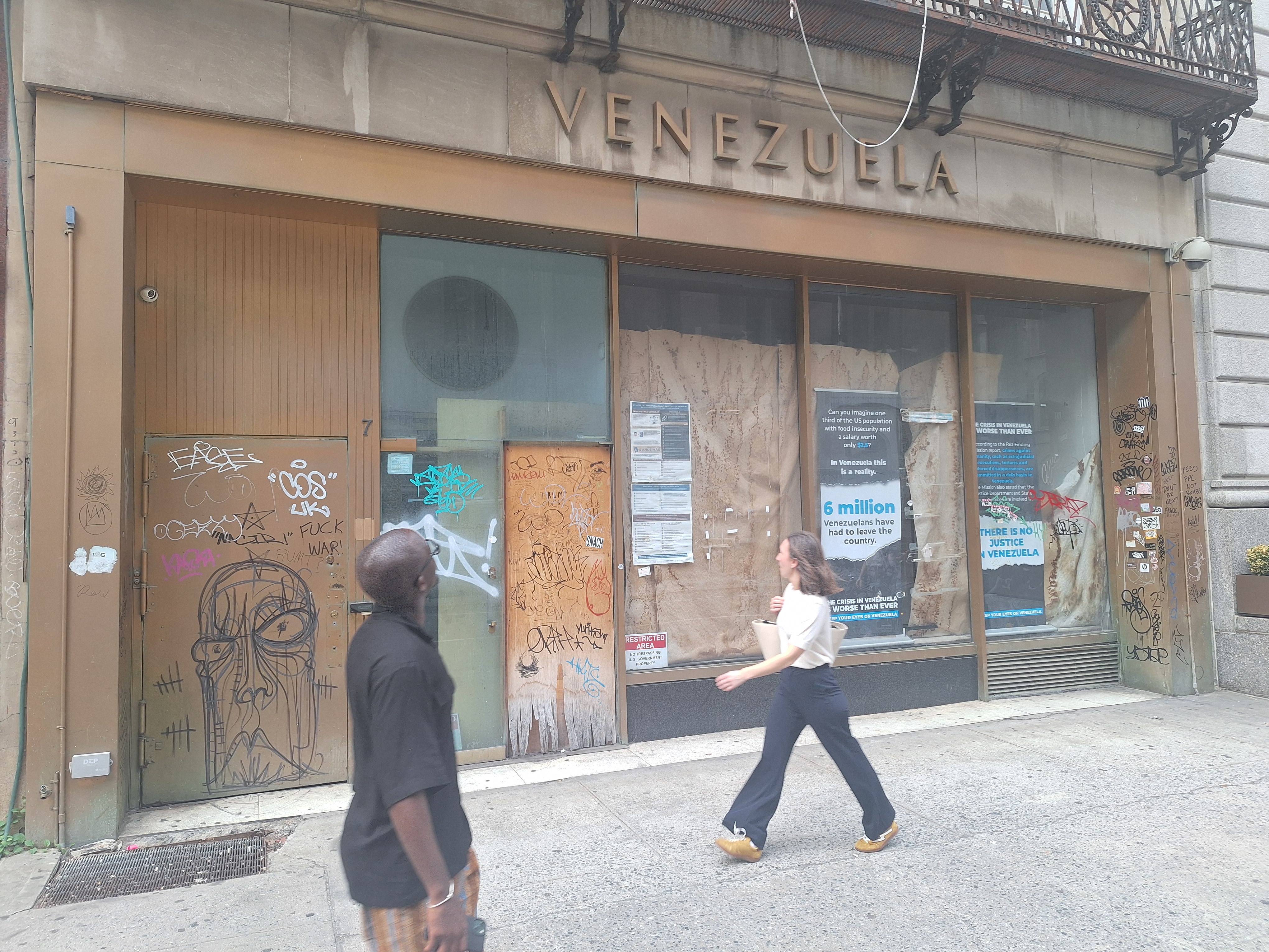 En Nueva York, la sede consular de Venezuela está ubicada en el 7 East de la calle 51 en Manhattan, al lado de la Catedral de San Patricio, en una de las zonas más exclusivas del mundo. El edificio en franco deterioro contrasta hoy con su entorno, donde predominan vitrinas de lujo y torres corporativas.
